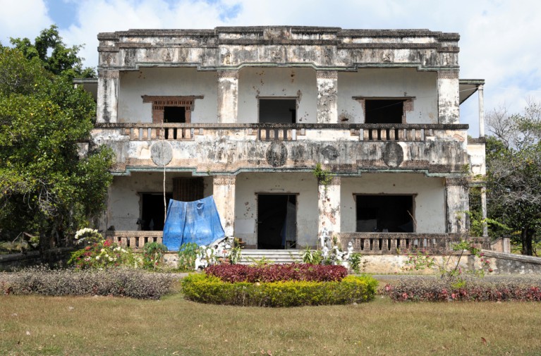 ភ្នំភ្លោះភ្នំនៅភ្នំដាត្រូវបានញែកដាច់ពីគ្នាដោយសារតែទឹកជំនន់ប្រចាំឆ្នាំដែលតម្រូវឱ្យភ្ញៀវធ្វើដំណើរតាមទូកច្រឡោតរយៈពេល 45 នាទី។ ភ្នំមួយស្ថិតនៅលើកំពូលភ្នំមួយដែលមានគ្រឹះតាំងពីសតវត្សទី 6 ទោះបីជាប្រាសាទនេះត្រូវបានកសាងឡើងវិញនៅសតវត្សទី 11 ក៏ដោយ។ ដោយឡែកច្រកចូលប្រាសាទនឹងប្រឈមមុខនឹងទិសខាងជើង។ ភាគីម្ខាងទៀតមានទ្វារងងឹតដែលតុបតែងដោយនាគចម្លាក់អណ្តើក។